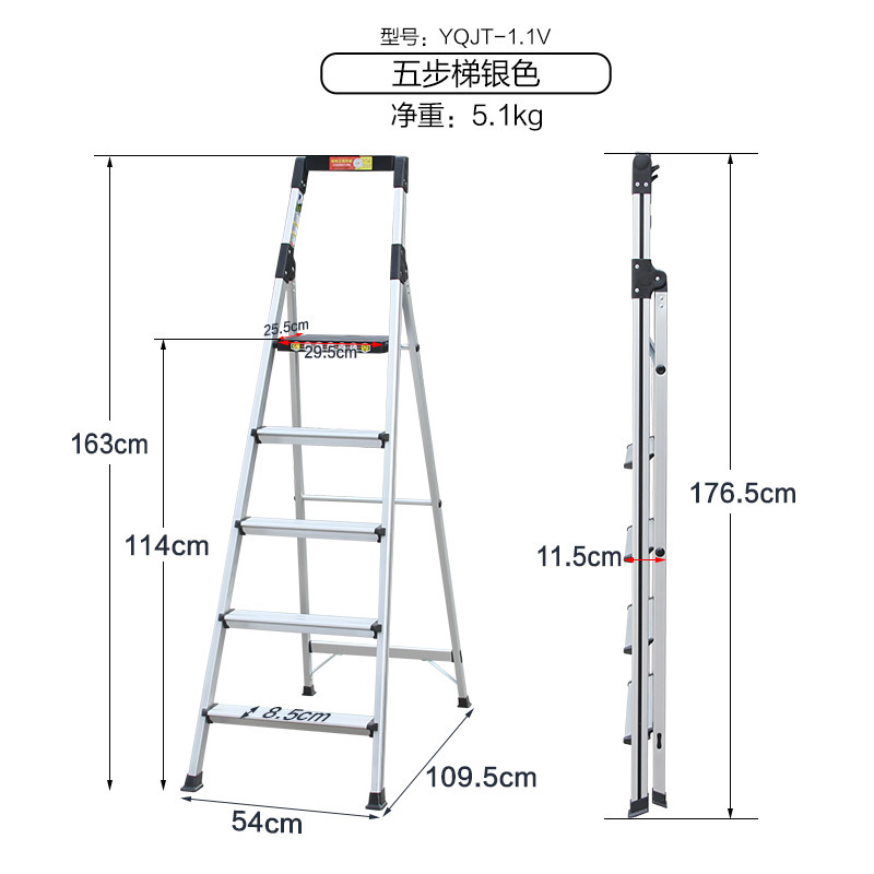 - Number of steps: Thickened new silver 5-step ladder - 1.1V