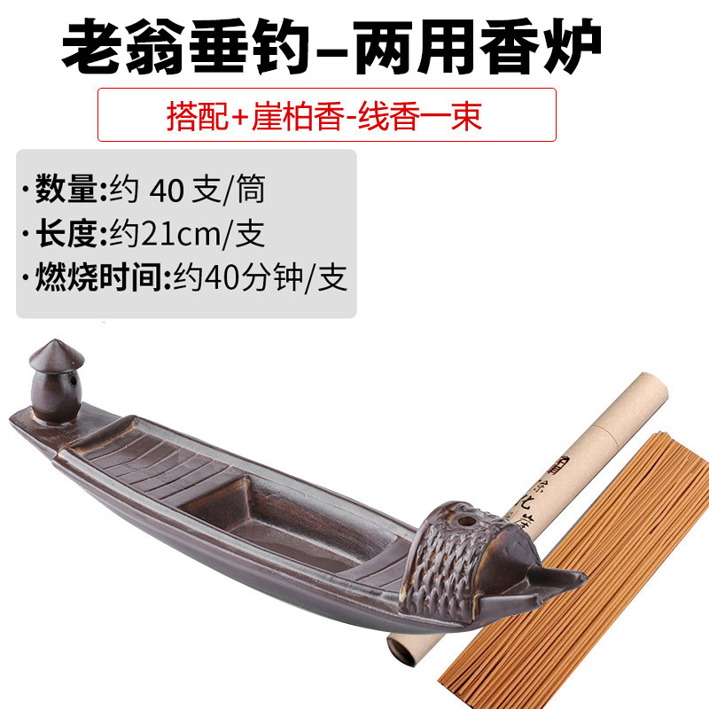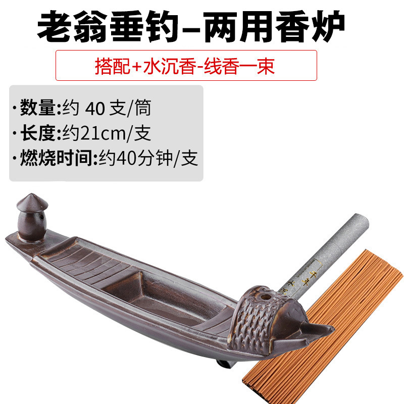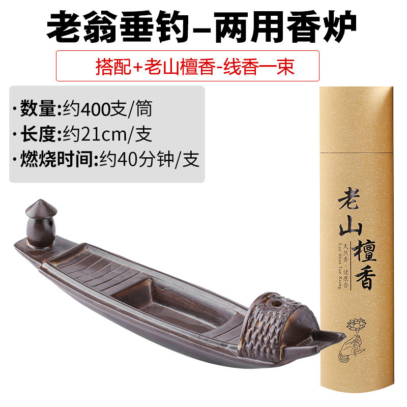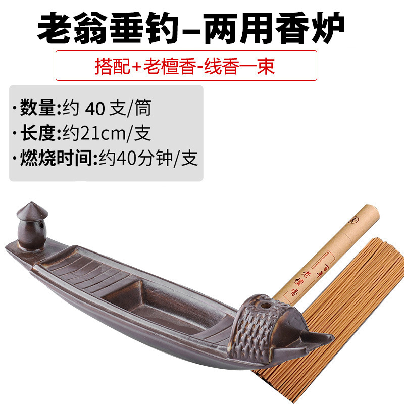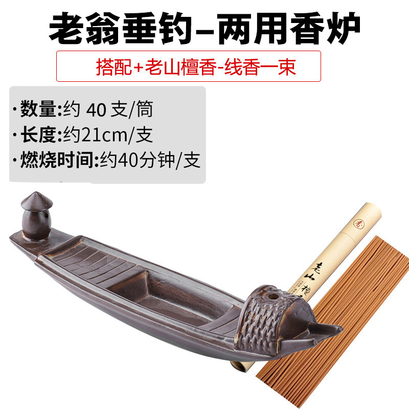 - 規格:鎂器-老翁垂釣兩用香爐+老山檀香線香長