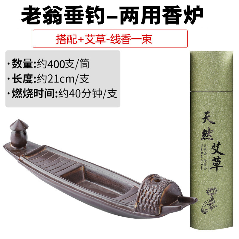 - 規格:鎂器-老翁垂釣兩用香爐+艾草香400根
