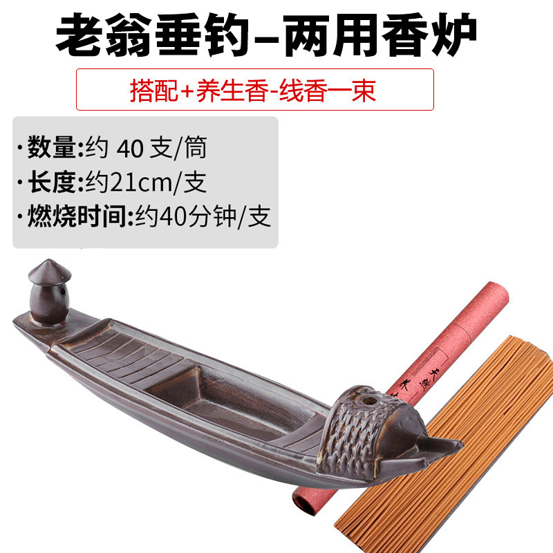 - 規格:鎂器-老翁垂釣兩用香爐+養生線香長