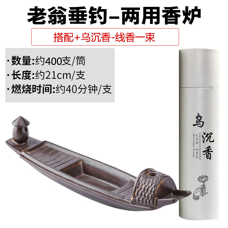 - 規格:鎂器-老翁垂釣兩用香爐+烏沉香400根