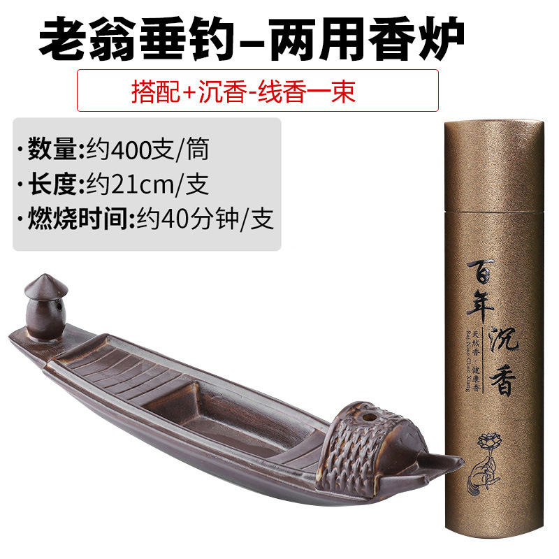 - 規格:鎂器-老翁垂釣兩用香爐+百年沉香400根