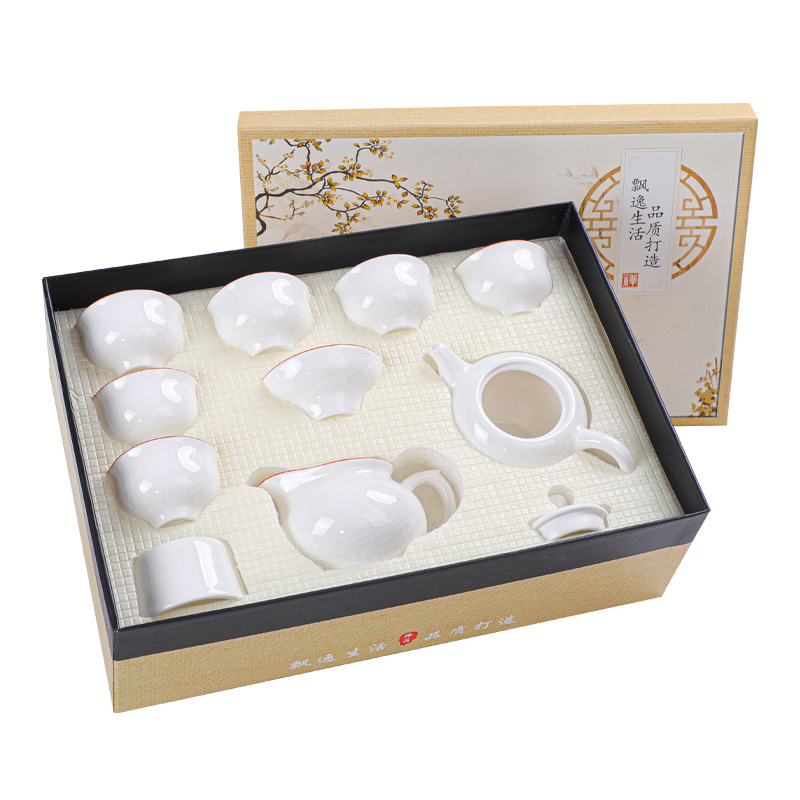- Specification: 10-Piece White Geyao Teapot Gift Box Set