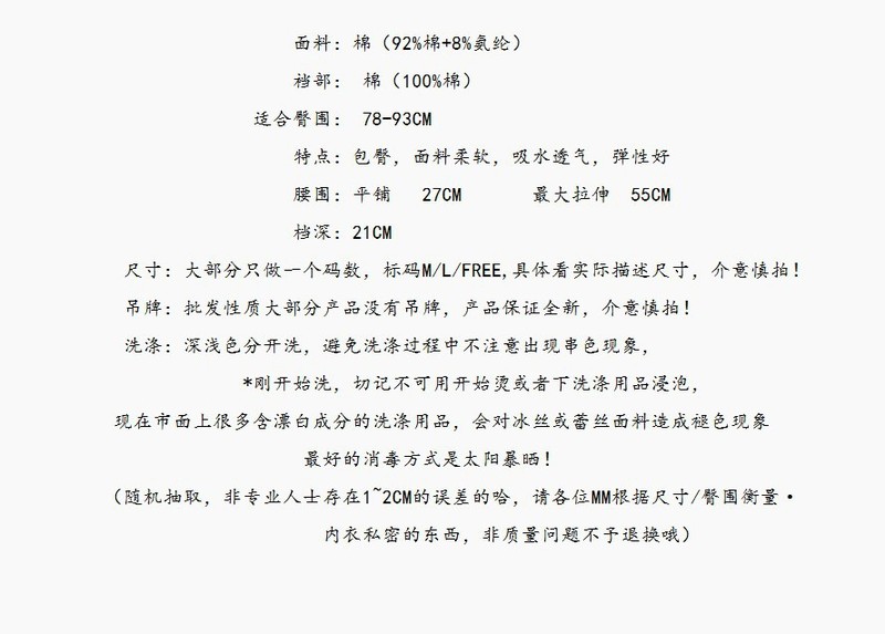 - Crotch lining composition: cotton