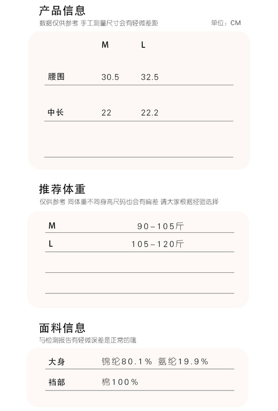 - Crotch lining composition: cotton
