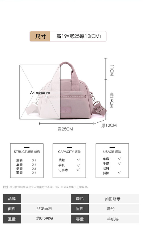 - Internal structure of the bag: Zipper secret pocket