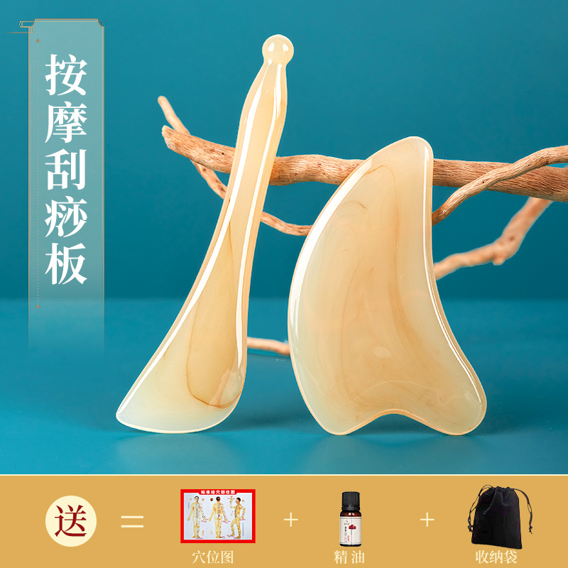 - Shape: Gua sha board + muscle pulling stick + essential oil + velvet bag + acupuncture point map