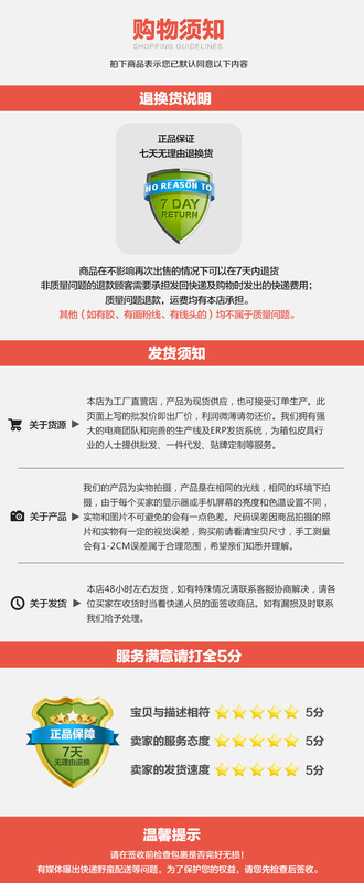 Delivery time: For products in stock, they will be shipped within 3 working days (excluding holidays) after you place your order and make payment. You will receive our notification after shipment.