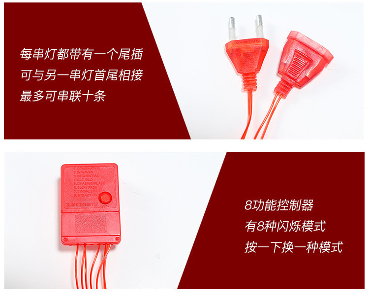 - Power: 5 meters 20 lights (plug-in model) high-bright red line