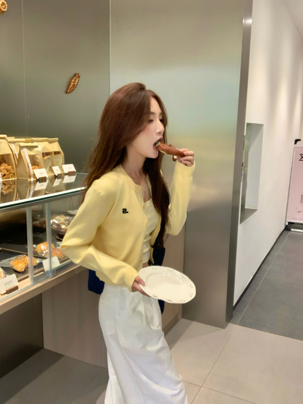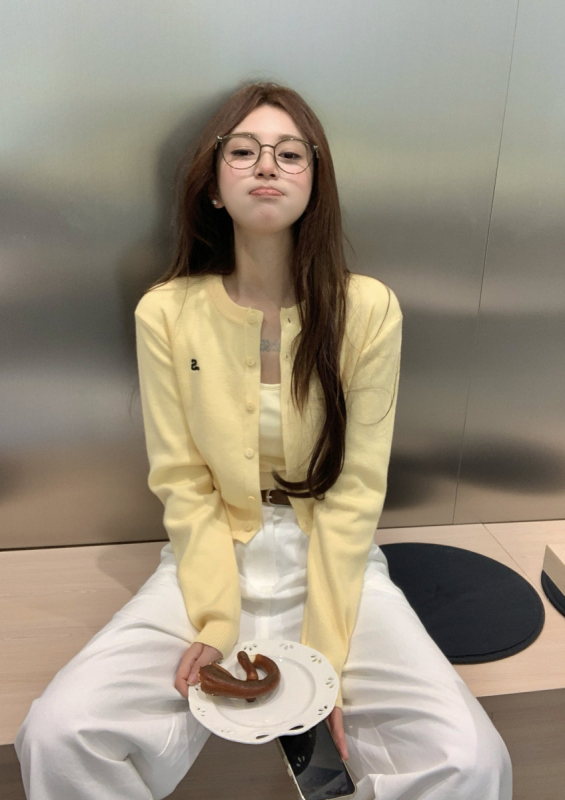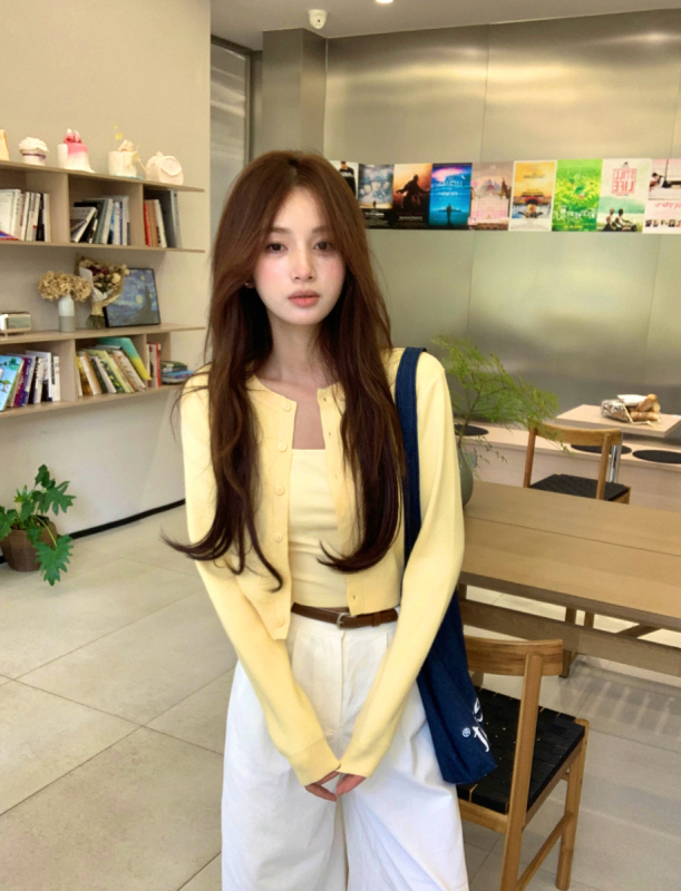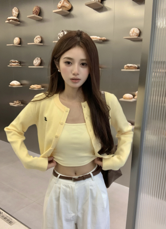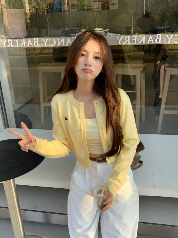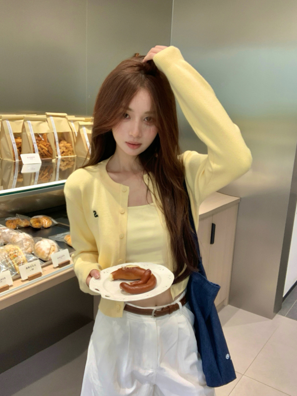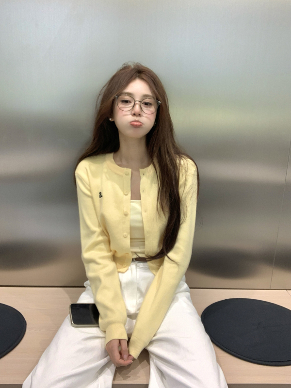 黃色針織開衫: