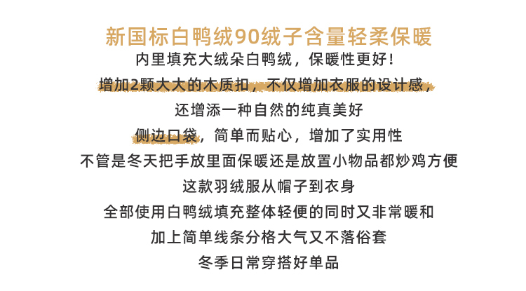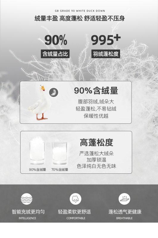 - Filling: white duck down