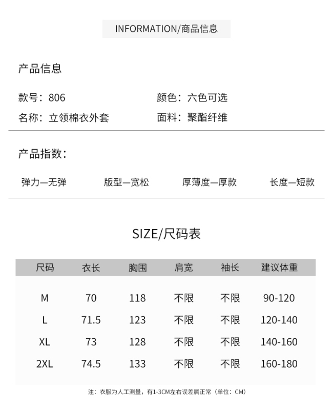 - Filling: cotton 96% and above