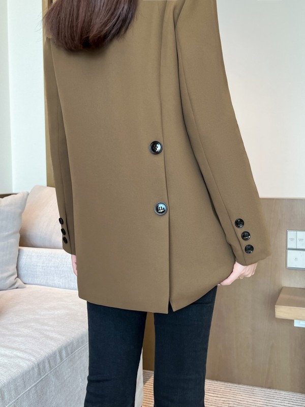 - Clothing style details: pockets + buttons