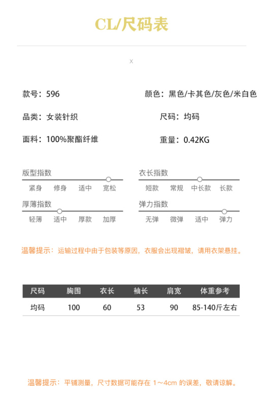 - Clothing version: loose type