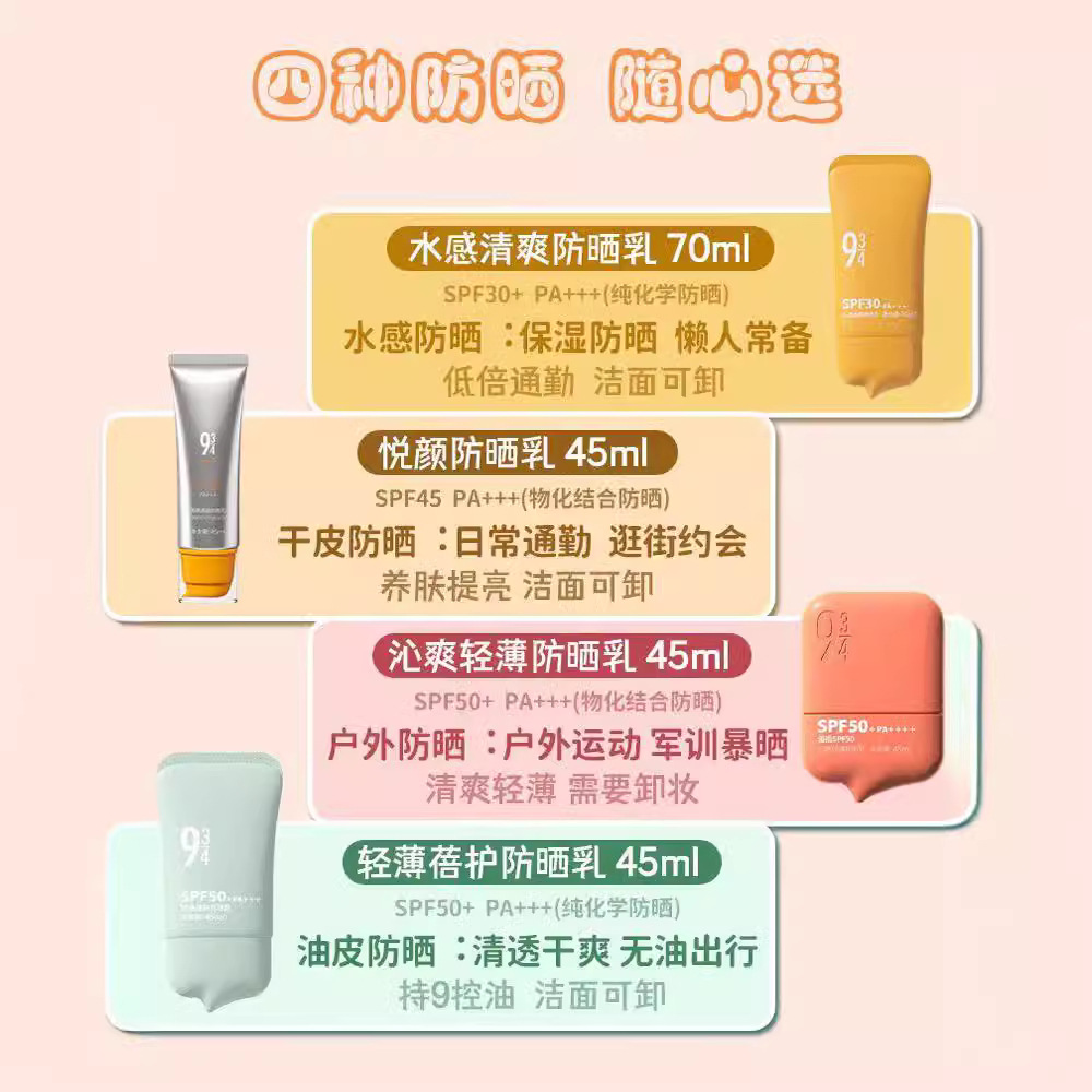 - Product name: 934 Qinshuang Lightweight Sunscreen Lotion