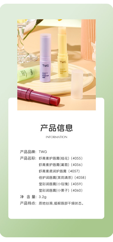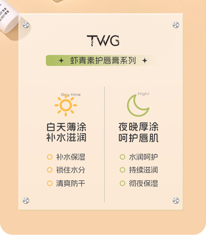 - Product name: TWG Astaxanthin Softening Lip Balm