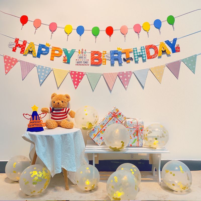- Specifications: Balloon flag + cake flag + colorful dot pennant