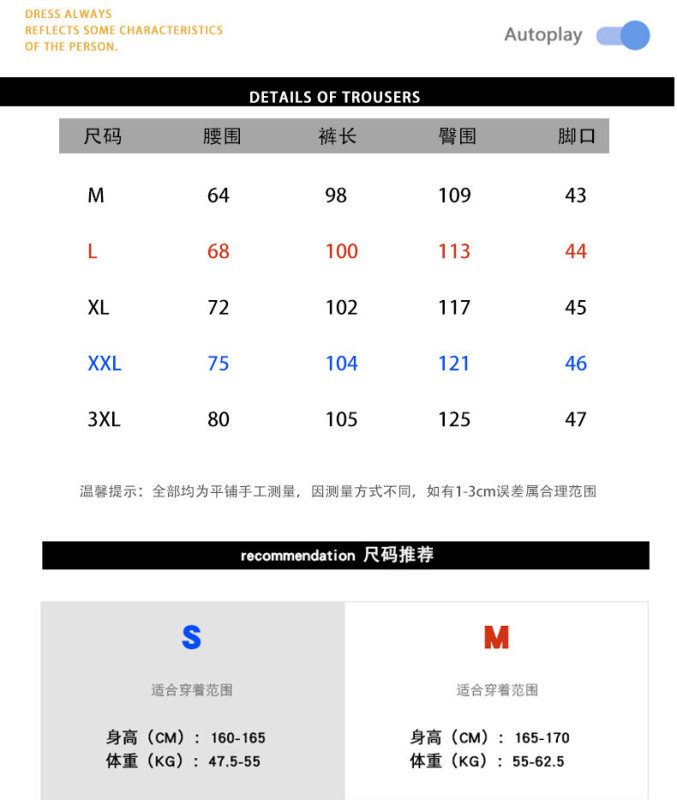 - Pants length: trousers
