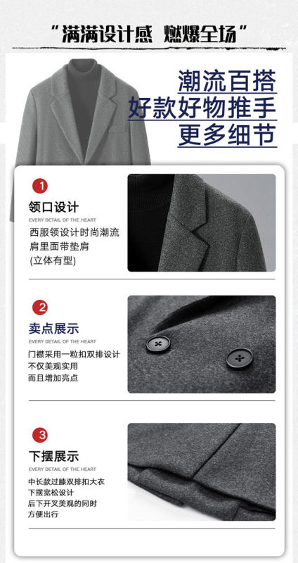 - Placket: double-breasted
