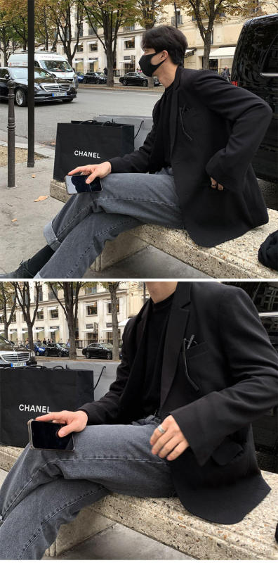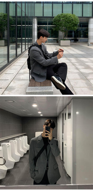- Placket: One double-breasted button