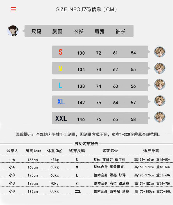 - Clothes length: regular style