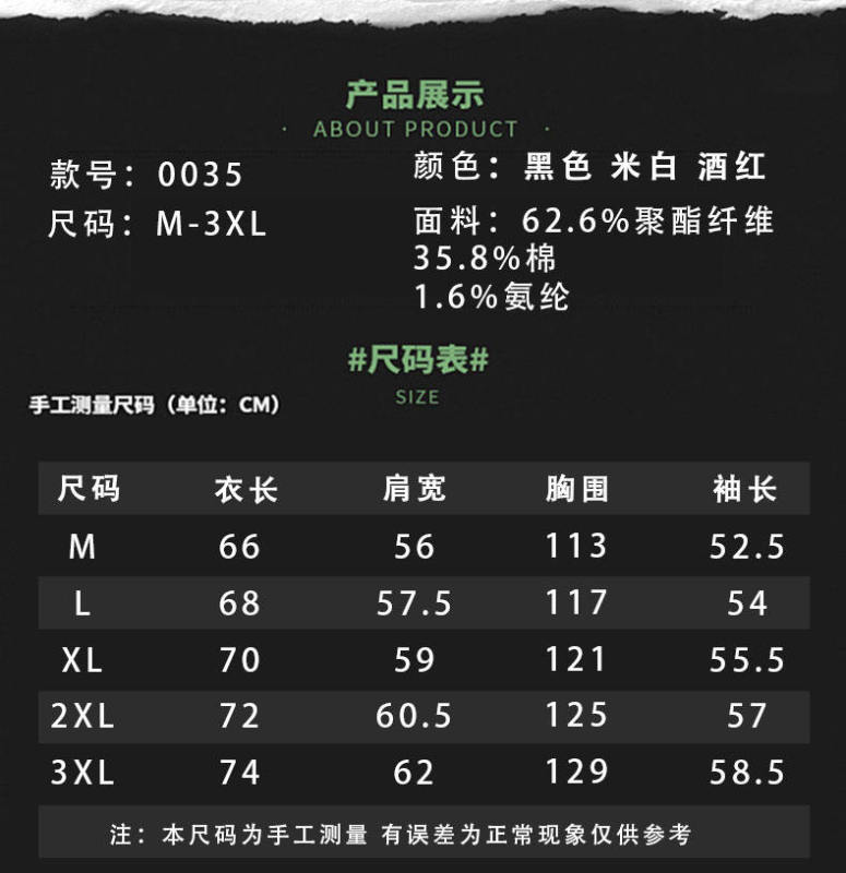 - Material composition: polyester fiber 62.6% cotton 35.8%...