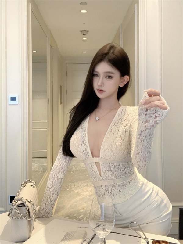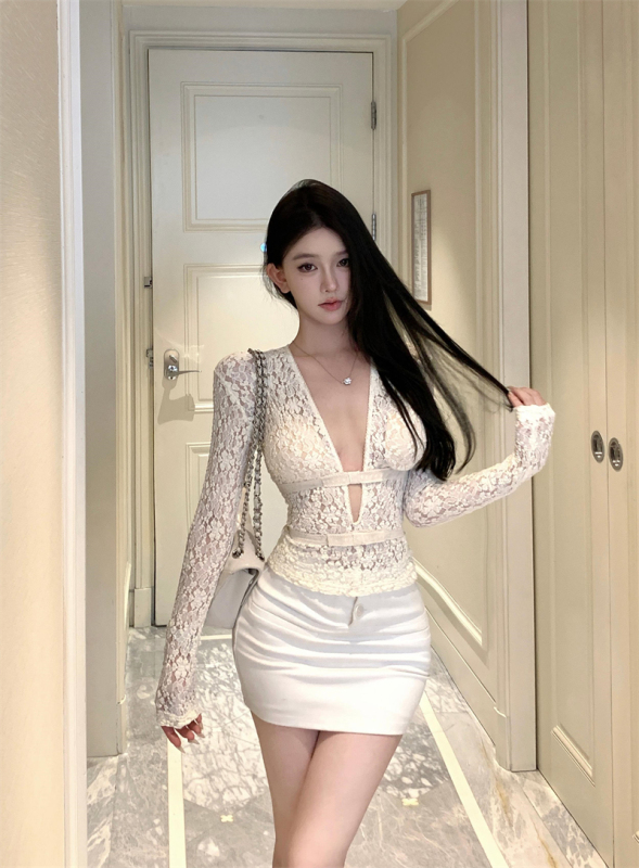 - Clothing style details: hollow + bow + strap + lace