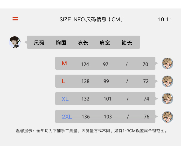- Clothing version: loose type
