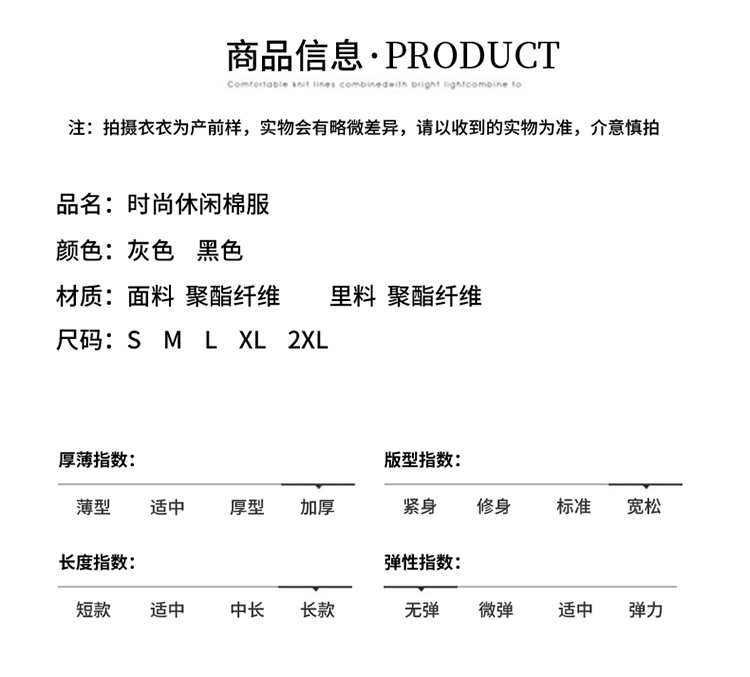 - Filling: cotton 96% and above