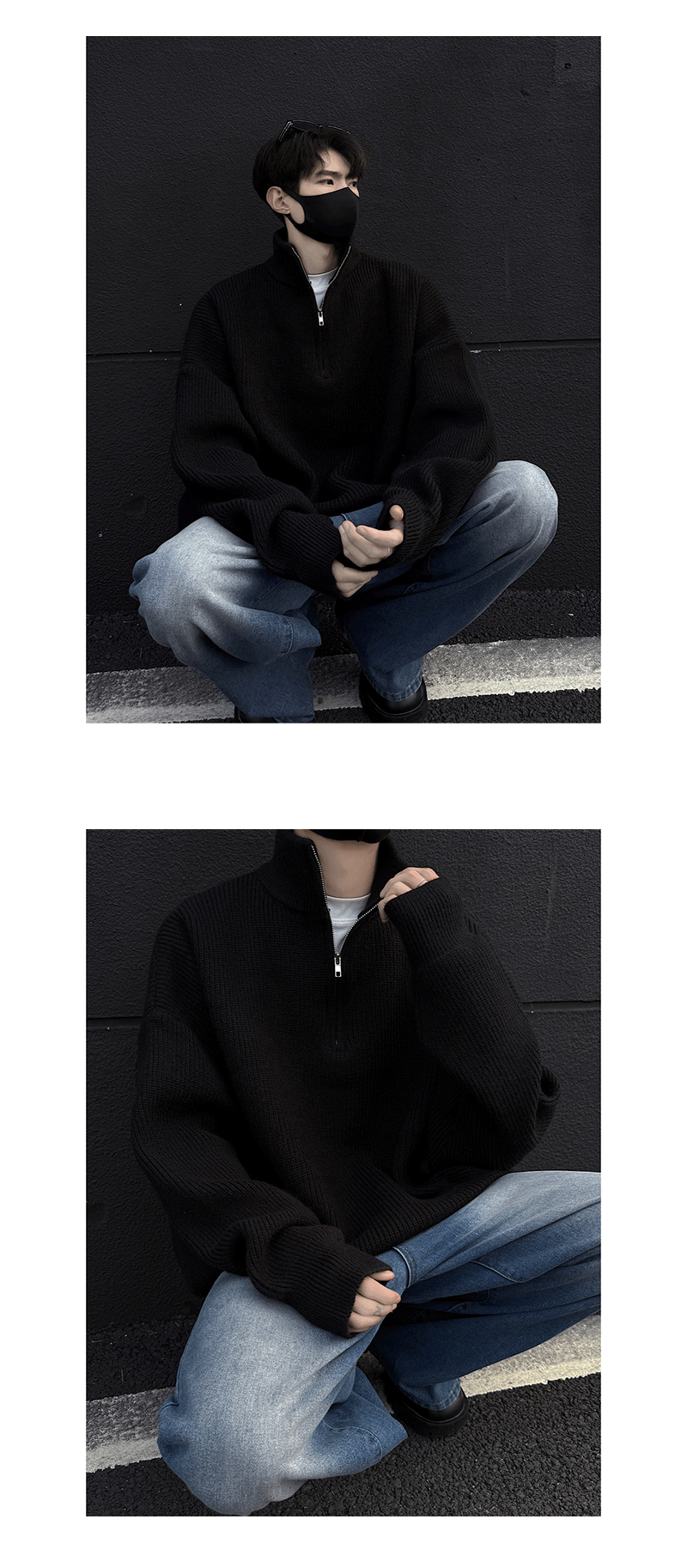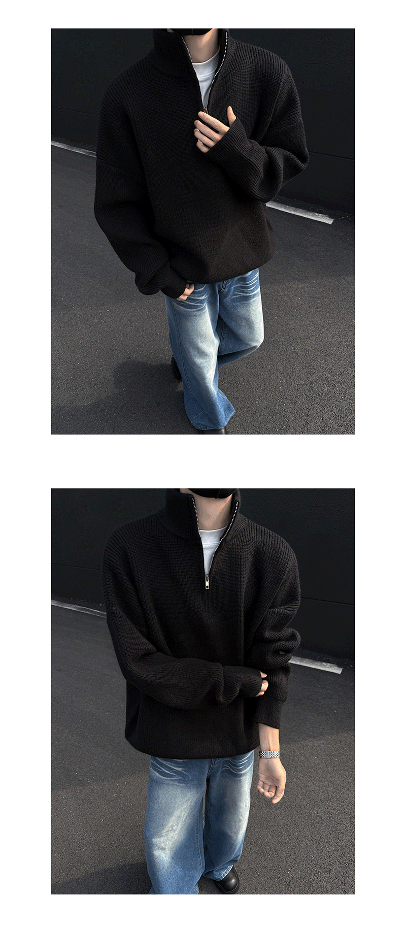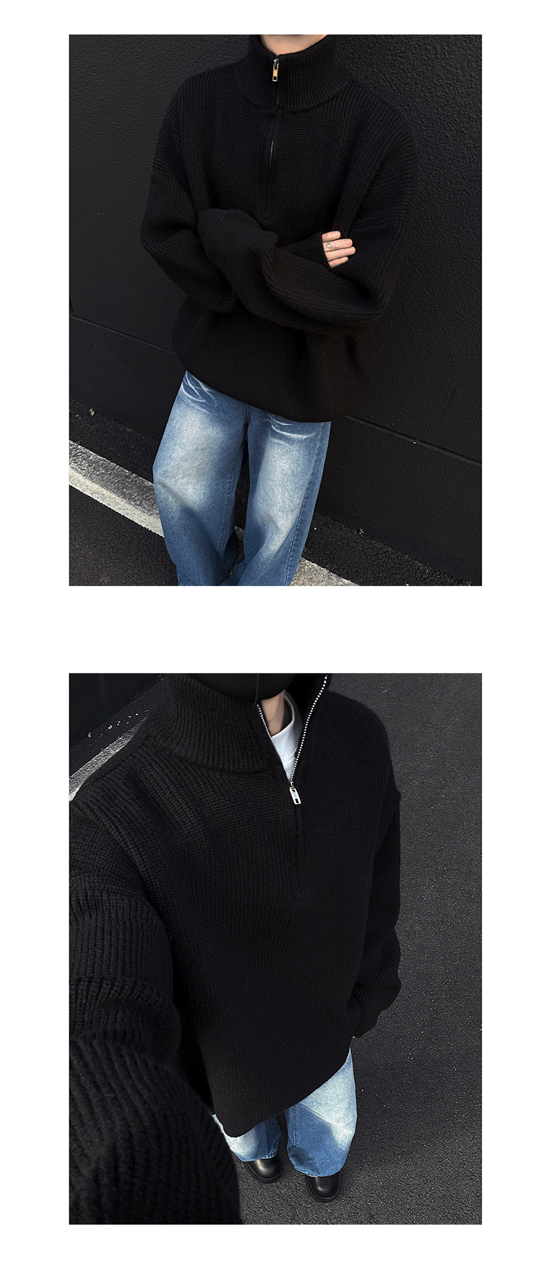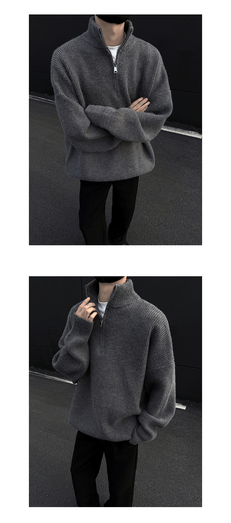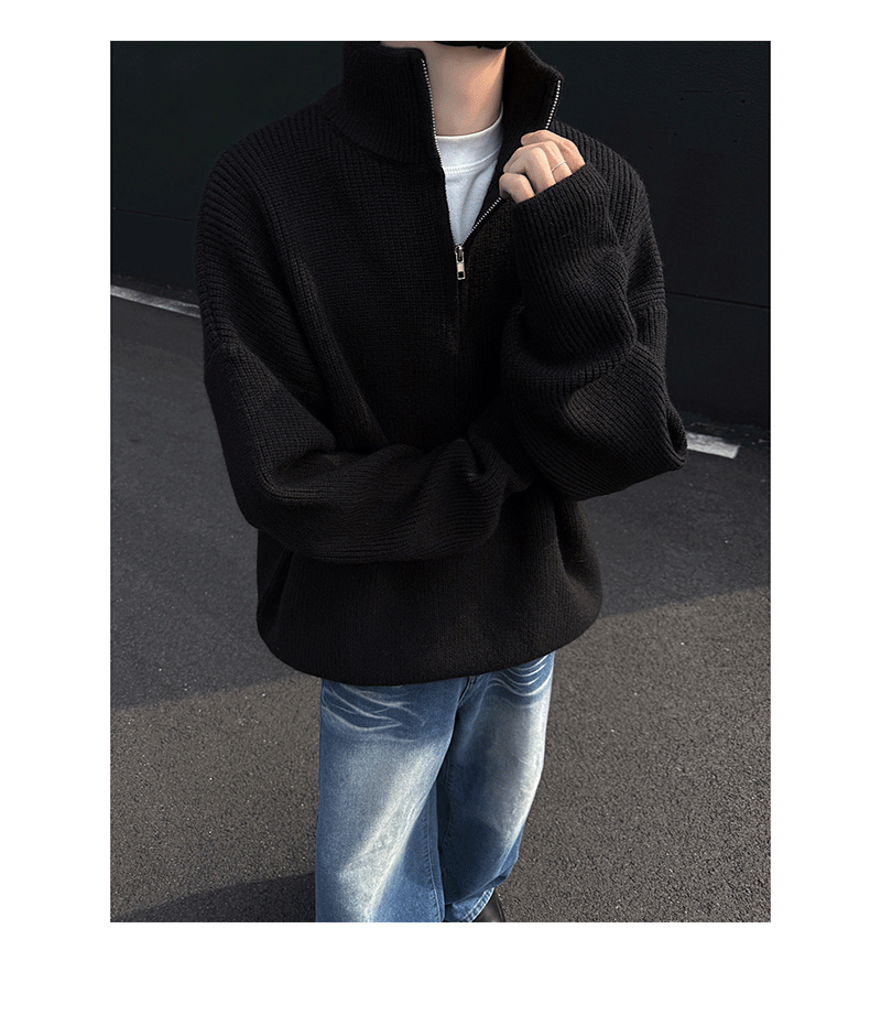 - Collar type: half-height zipper