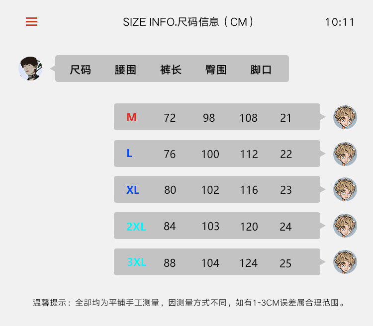 - Clothing version: loose type