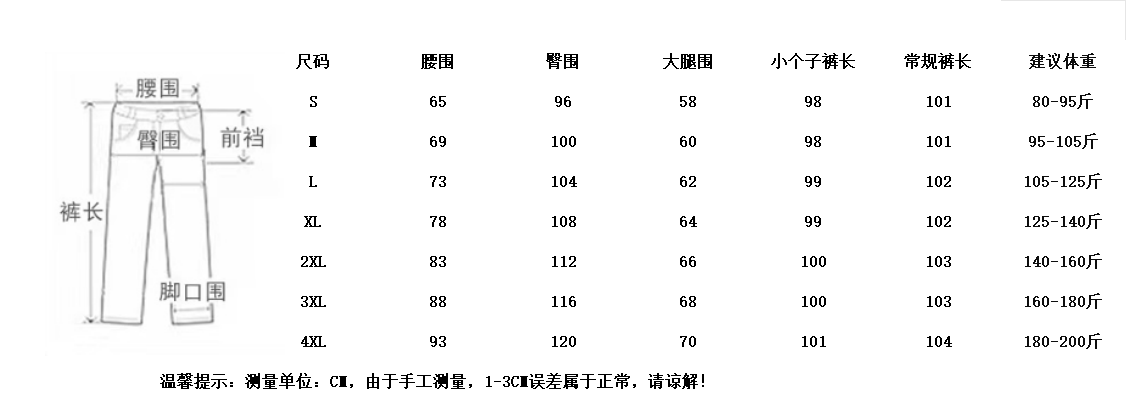 - Pants length: trousers