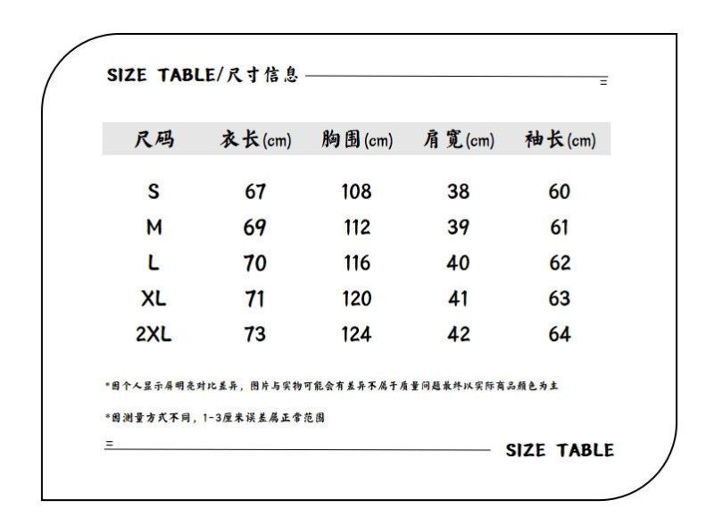 - Clothes length: regular style