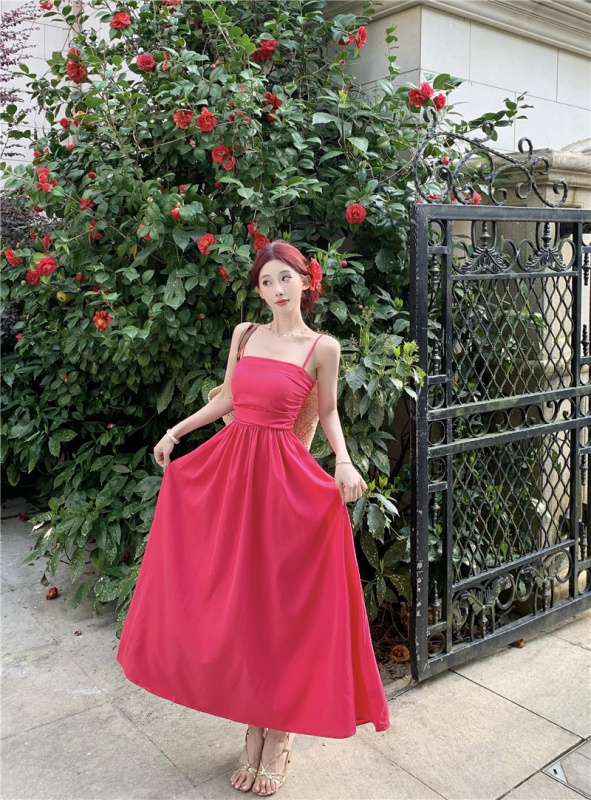 - 流行元素/工藝:露背+褶皺+壓褶+隱形拉鏈+吊帶