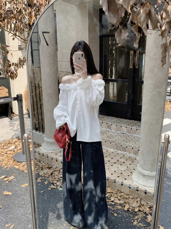 Long-sleeved style, it can be easily cope with a little coolness in the morning and evening. The fabric is soft and glutinous, and the upper body is super comfortable~ Paired with black wide-leg pants, it is simple and high-end, and it is very suitable for daily travel or dates.!
