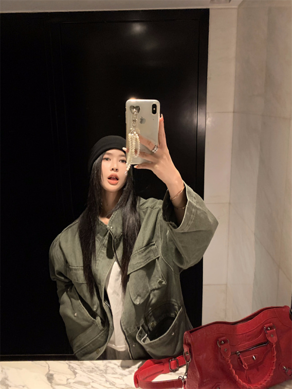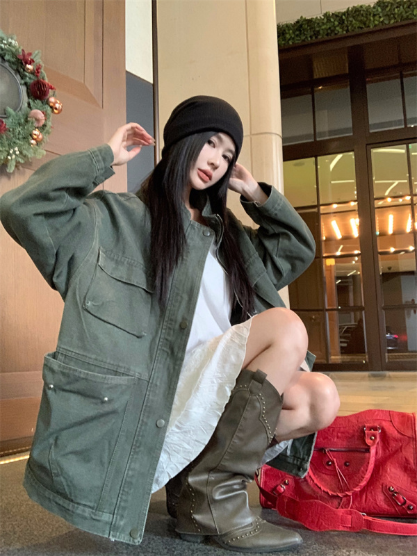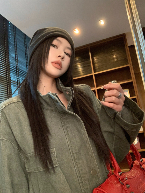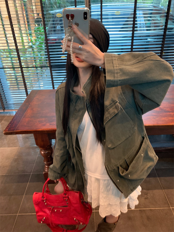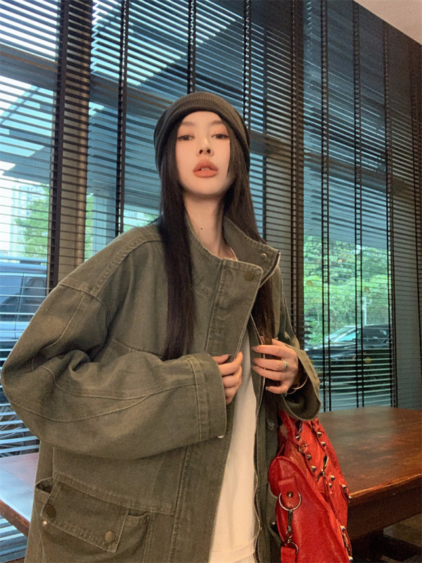 - Collar: stand-up collar