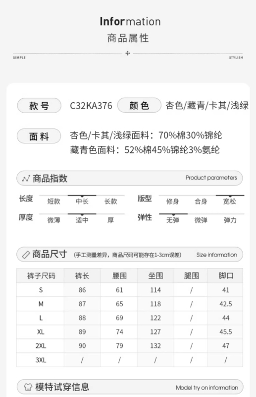 - Women's pants: Straight pants