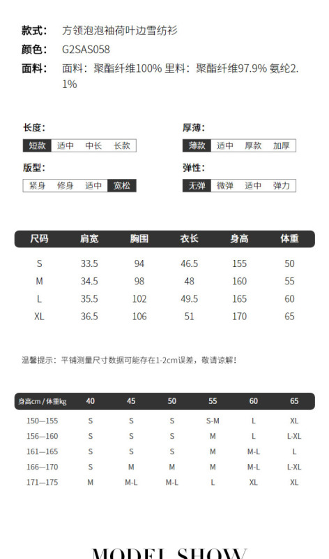 - 袖型:泡泡袖