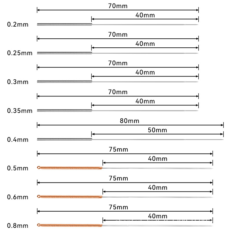 - Specification: (0.2MM 0.25MM 0.3MM 0.35MM 0.4MM 0.5MM 0.6MM 0.8MM, each 1 piece per tube