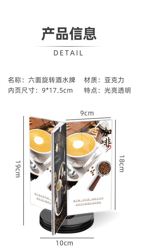 - Specification: Six-Sided Vertical Stand, Black Base: 9*18cm
