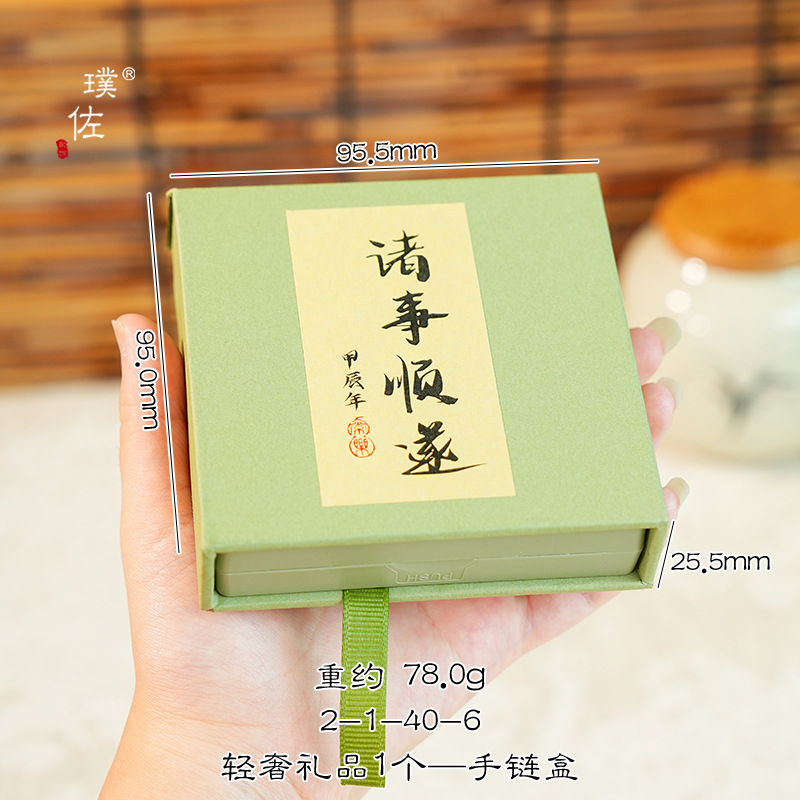 - 規格型號:2-1-40-6綠色諸事順遂禮品盒;9*9*2.5cm