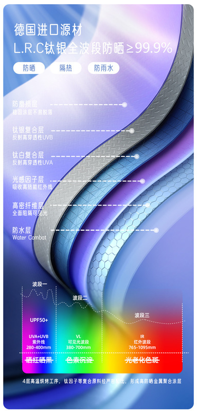 - UV Sun Protection Index: UPF > 50