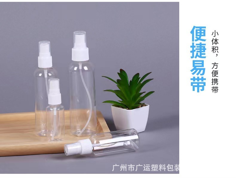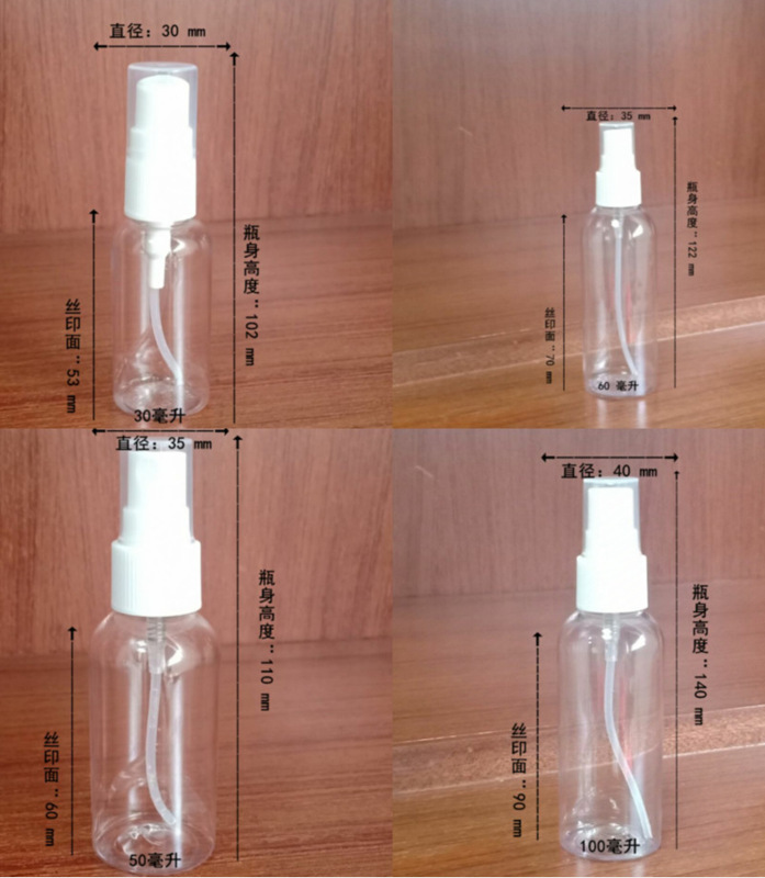 - Specification Model: 100ml Transparent Spray Bottle; Transparent; PET