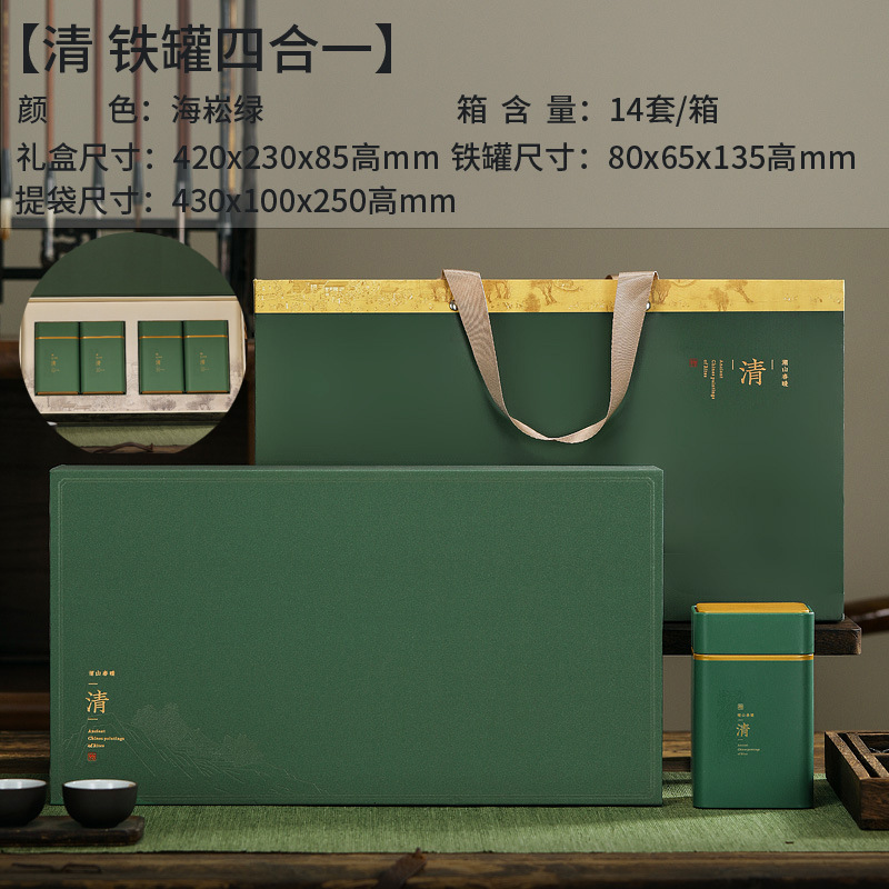 - 規格型號:冰雪藍山澗鐵罐二合一;半斤/一斤;綠色