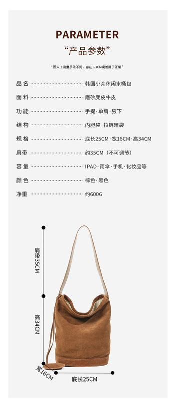 - Women's bag: Girls' frosted suede suede bucket bag