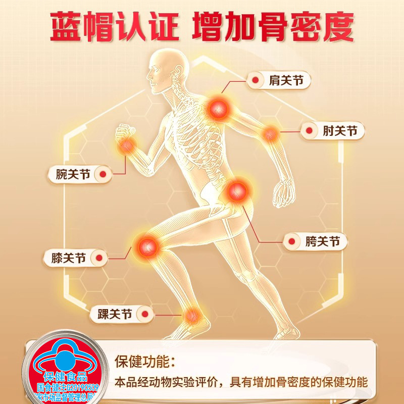 - Health Claim: This product has been evaluated through animal experiments and is found to have the health function of increasing bone density.