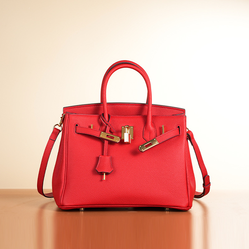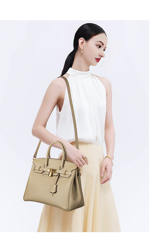 - 款式2:荔枝紋真皮女包鎖扣氣質休閒手提包
