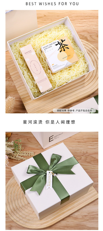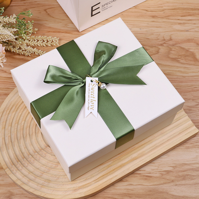 - 規格型號:田園風米白色蝴蝶結禮盒;禮盒+禮袋:定做內徑15*15*10cm
