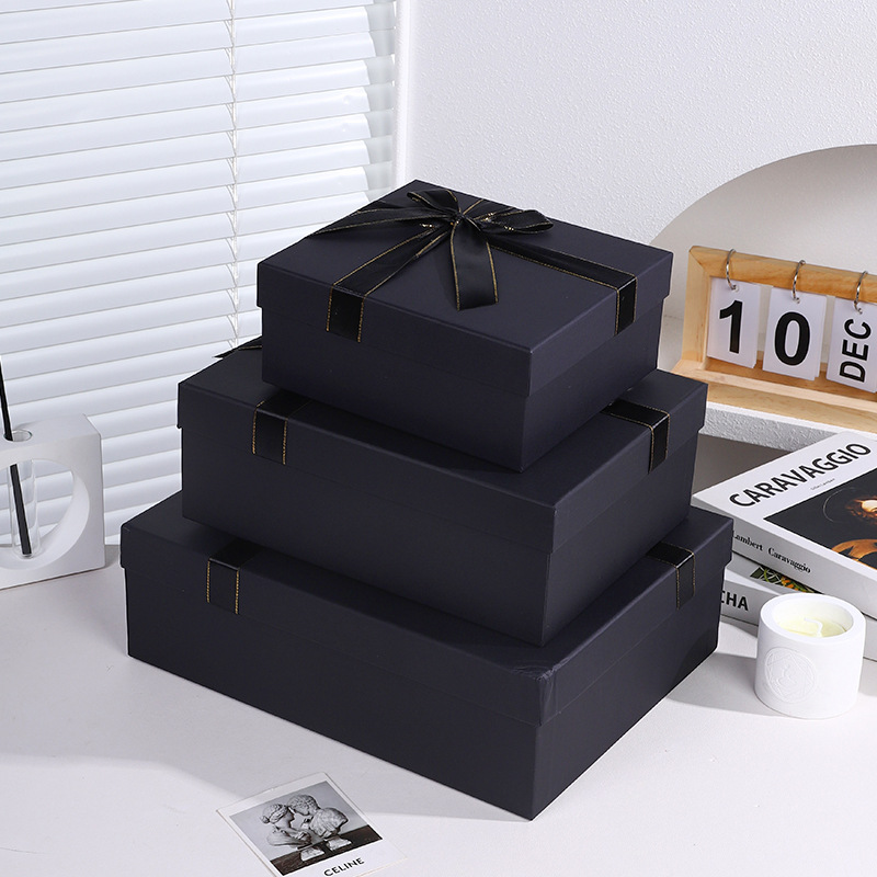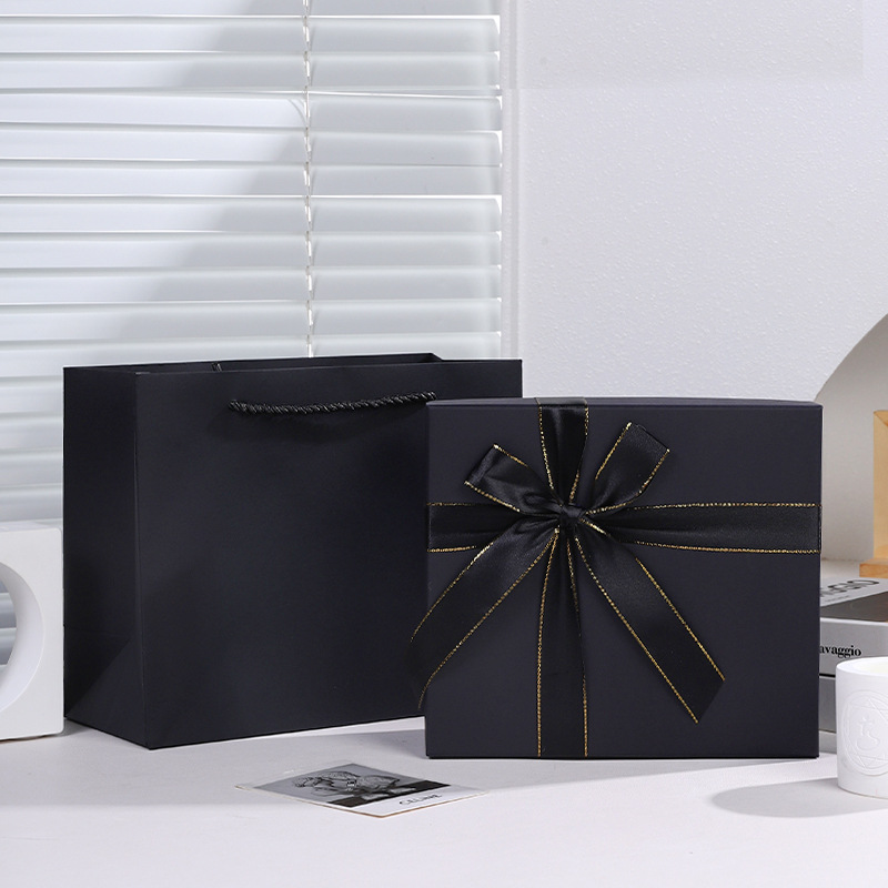 - 規格型號:金邊蝴蝶結黑色禮盒;方形小號加高禮盒+禮袋:20x18x10cm
