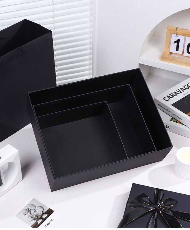 - 規格型號:金邊蝴蝶結黑色禮盒;中號加高禮盒+禮袋:28x21x12cm
